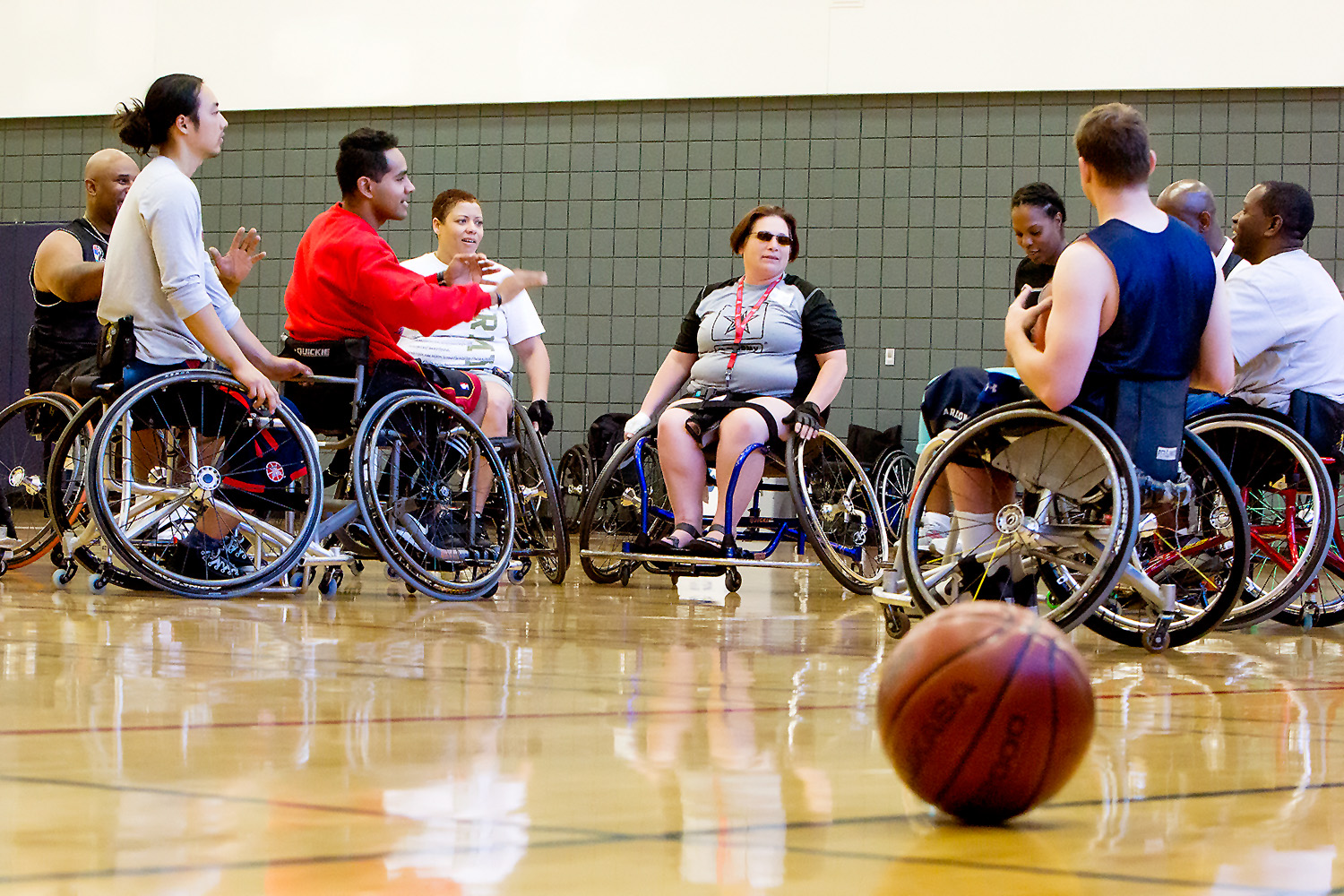 Veterans from as far as Florida took part in the veterans GPS sports camp basketball workshop like Mary Esther Austin, center, who is a pharmacy tech in Tampa Florida.Austin said she took part in the camp to help her get her educational goals in place and pursue a bachelor degree. Photograph by John de Dios/UANews