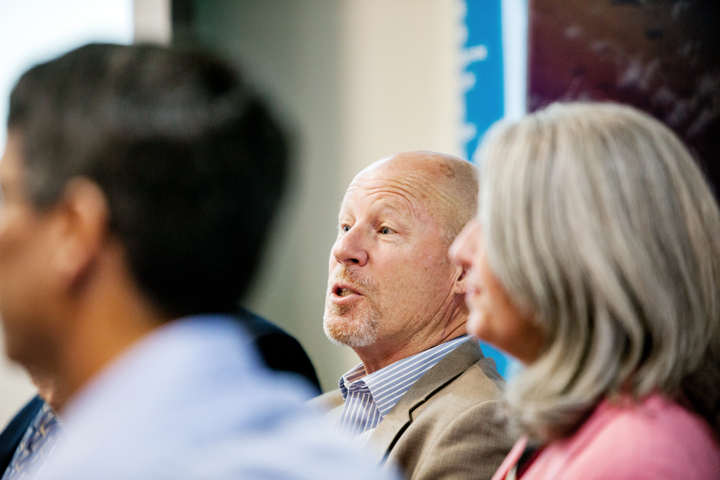 Professor Stanley Reynolds, Ph.D., from the Eller School of Management at the University of Arizona, participated in the Systems level — Energy, Water, Food panel at the Enabling Resiliency in Energy, Water, and Food Systems for Society symposium at the Biosphere 2 on Wednesday, April 15, 2015. Photogrph by John de Dios/UA News